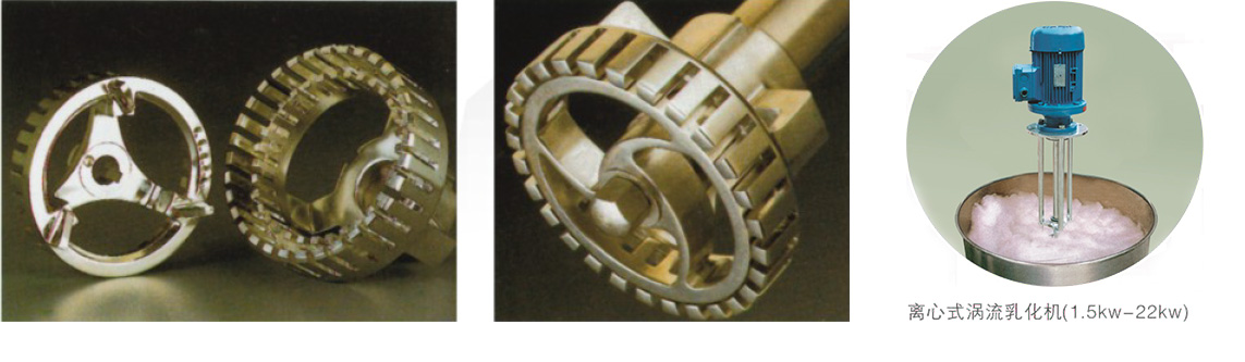 The machine working through the motor driving fast to rotate the principal axis and the principal rotates the emulsifying rotor.With the leading scrapers of the rotor, the material is inhaled into the emulsifying room through the above side and underside of the stator; by the work of the rotor scrapes and the narrow stator interface,the material is cut, smashed,homogenized and reaching the perfect finish; through the high-speeding centrifugal rotation of the scrapers, the material is discharged through the homogenizer stator room. Working based on this internal circulation,the machine could complet the ideal homogenizing and emulsifying processin the very shorttime.