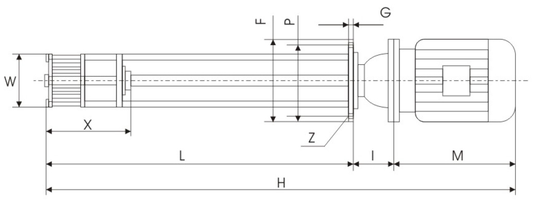 POWER KW | CAPABILITY L | ROTATION SPEED min/r | H | M | I | L | G | P | F | W | X | Z |