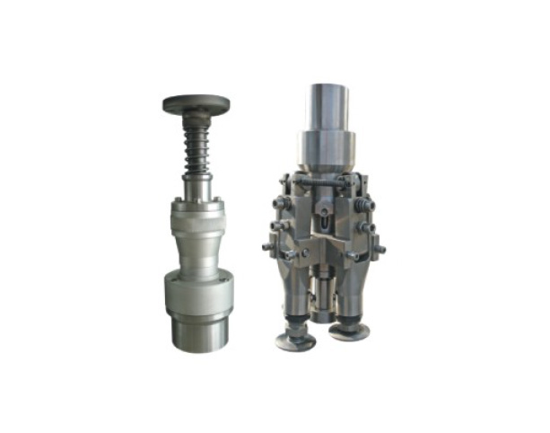 由星盤間歇式將瓶子帶至封蓋工位進(jìn)行封蓋。附一組離合器,當(dāng)有卡瓶或過載時(shí),自動(dòng)分離并停機(jī),降低破損率,保證設(shè)備正常進(jìn)行